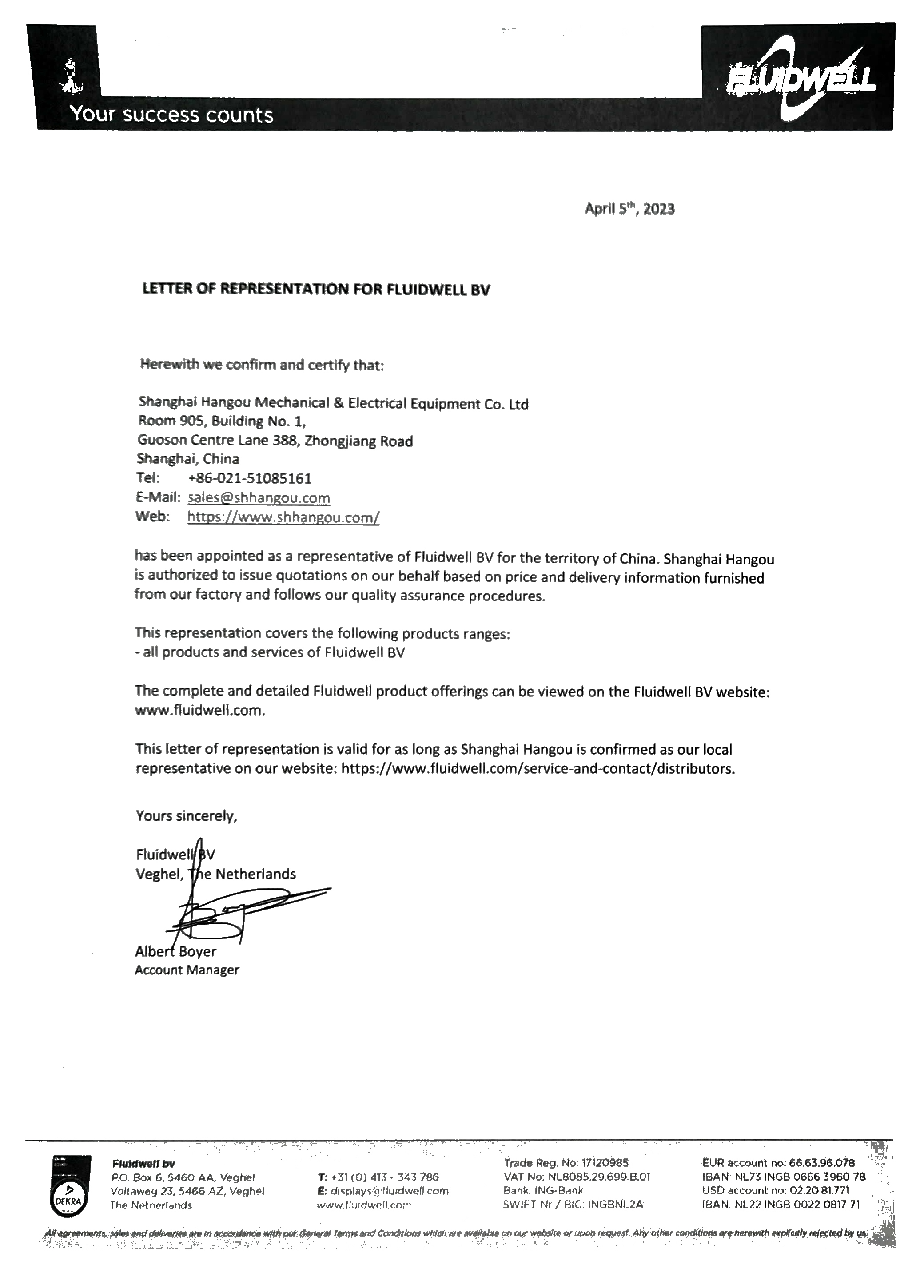 2023年FLUIDWELL工廠授權上海航歐中國區代理