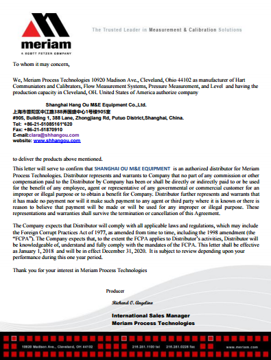 美國MERIAM流量計、MERIAM層流元件、MERIAM壓力計、MERIAM壓力變送器、MERIAM校準儀上海航歐機電設備有限公司從事進口機電設備、儀器儀表等疑難備品備件的銷售,是經(jīng)營世界各地進口設備的現(xiàn)代化企業(yè)。