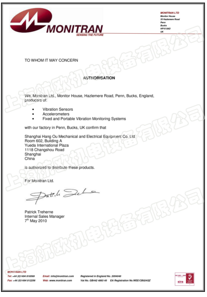 上海航歐銷售英國MONITRAN傳感器,成立于1986年,是英國的振動傳感器制造商。Monitran對速度計、機械保護和維修渦流探頭的開發(fā)、生產(chǎn)和應(yīng)用,使我們成為五大洲的相關(guān)行業(yè)工業(yè)商。Monitran的振動傳感器,固定和移動監(jiān)測系統(tǒng)及其輔助設(shè)備,如傳感器,探頭,轉(zhuǎn)接器加速器探頭驅(qū)動器和電纜組件等產(chǎn)品為您提供可靠,和成本效益的振動監(jiān)測和測量。Monitran產(chǎn)品通過ISO9001:2008認證,Monitran的加速計用于監(jiān)測,如水泵、電機、傳感器、加速器、探頭風(fēng)機、發(fā)動機、探頭驅(qū)動器、傳動系統(tǒng)和機械振動等不同的應(yīng)用范圍。上海航歐機電設(shè)備有限公司從事進口機電設(shè)備、儀器儀表等疑難備品備件的銷售,是經(jīng)營世界各地進口設(shè)備的現(xiàn)代化企業(yè)。